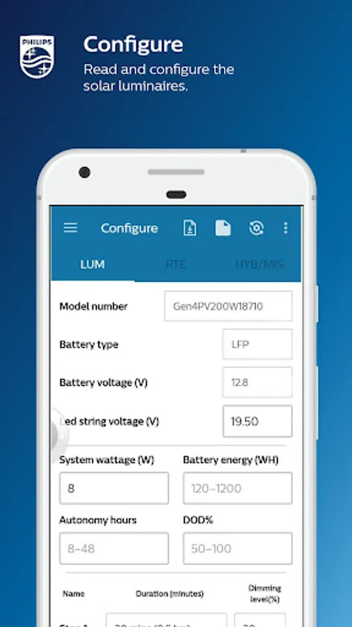 "Philips Solar Gen4 Configurator" is B2B App, complementary and easy to use for monitoring and configuring the Solar luminaire from Philips Lighting. This is designed to be use by Signify certified partners, service engineers, and installers.