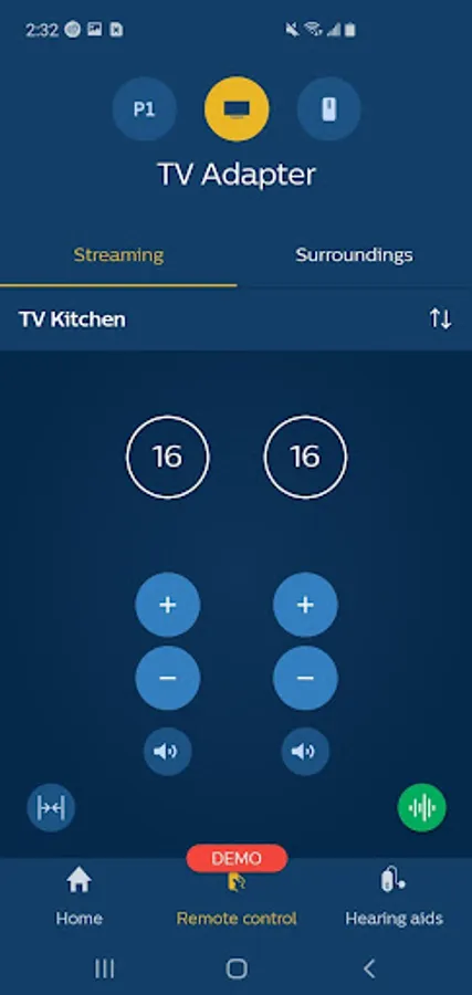 - Select from which of your TV-Adapters you want to stream the signal to your hearing aids.