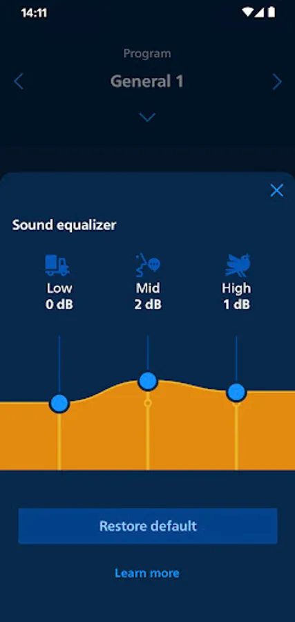 • Use the streaming equalizer for a personalized listening experience. The streaming equalizer is available for all Philips HearLink Bluetooth hearing aids except Philips HearLink 2000 and 3000