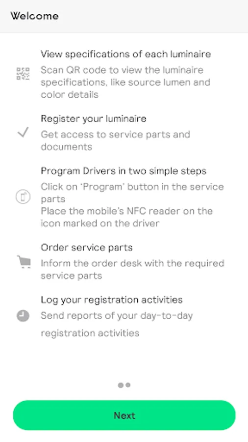 Signify Service tag is a unique QR-based identification system that makes each luminaire uniquely identifiable and provides maintenance, installation and spare part information applicable to the individual luminaire. By scanning the QR codes on all next generation luminaires, manufactured by Signify, you have easy access to product configuration information, enabling you to save valuable time and prevent errors.