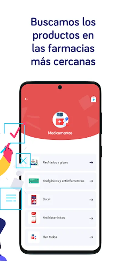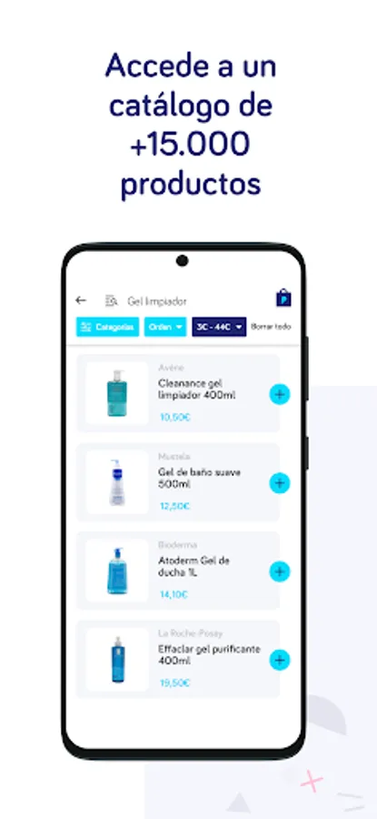 · Access the app and browse the categories of Cosmetics, Dietetics, Hygiene, Health, Optics, Babies and Mothers, Veterinary, Orthopedics and Medicines (without prescription).