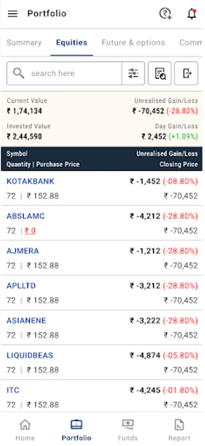 · Portfolio tracking for Equity, Derivatives, Mutual Funds