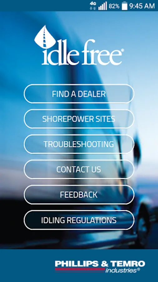 The Idle Free Application is designed with truck drivers in mind, to enhance the experience of the Idle Free electric APU. It contains information such as service or dealer locations, Shorepower locations where a truck driver can charge the APU’s batteries, a troubleshooting guide to help solve any unanticipated issues, technical and sales contact information, and idling regulations by state.