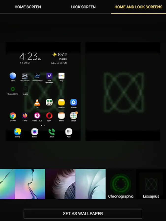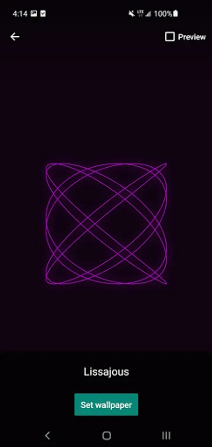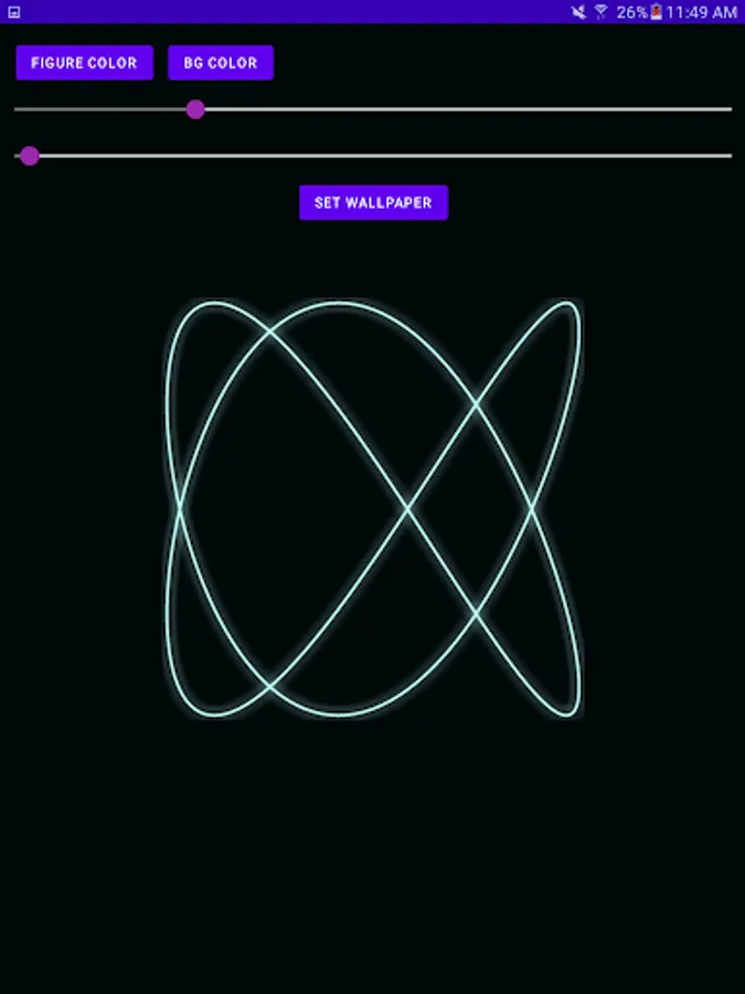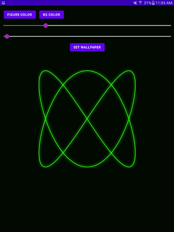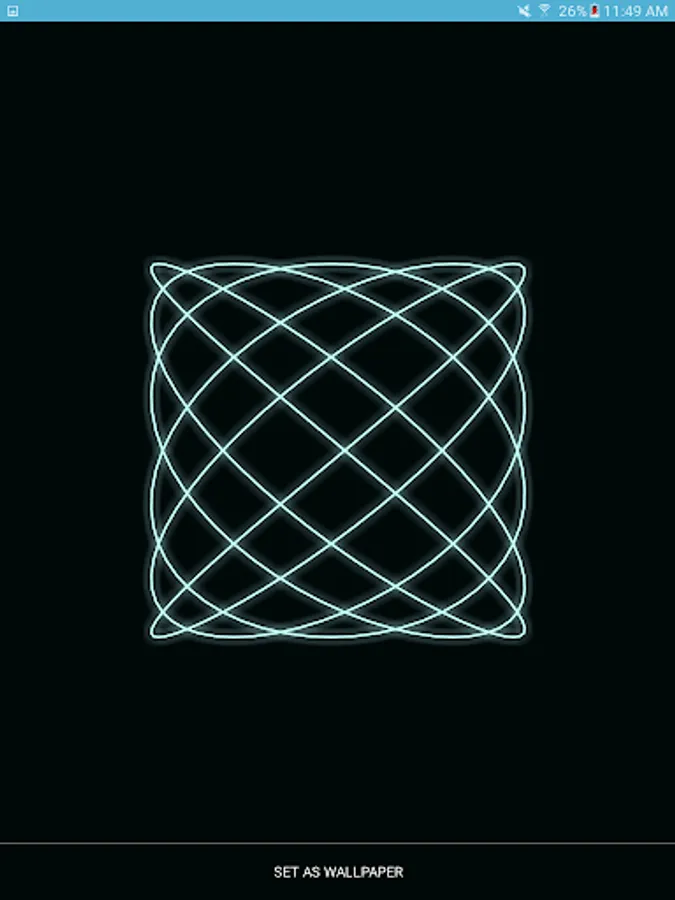 A customizable live wallpaper of a variety of "rotating" Lissajous figurines. Each time the wallpaper goes out of sight, the background changes to a new figure.