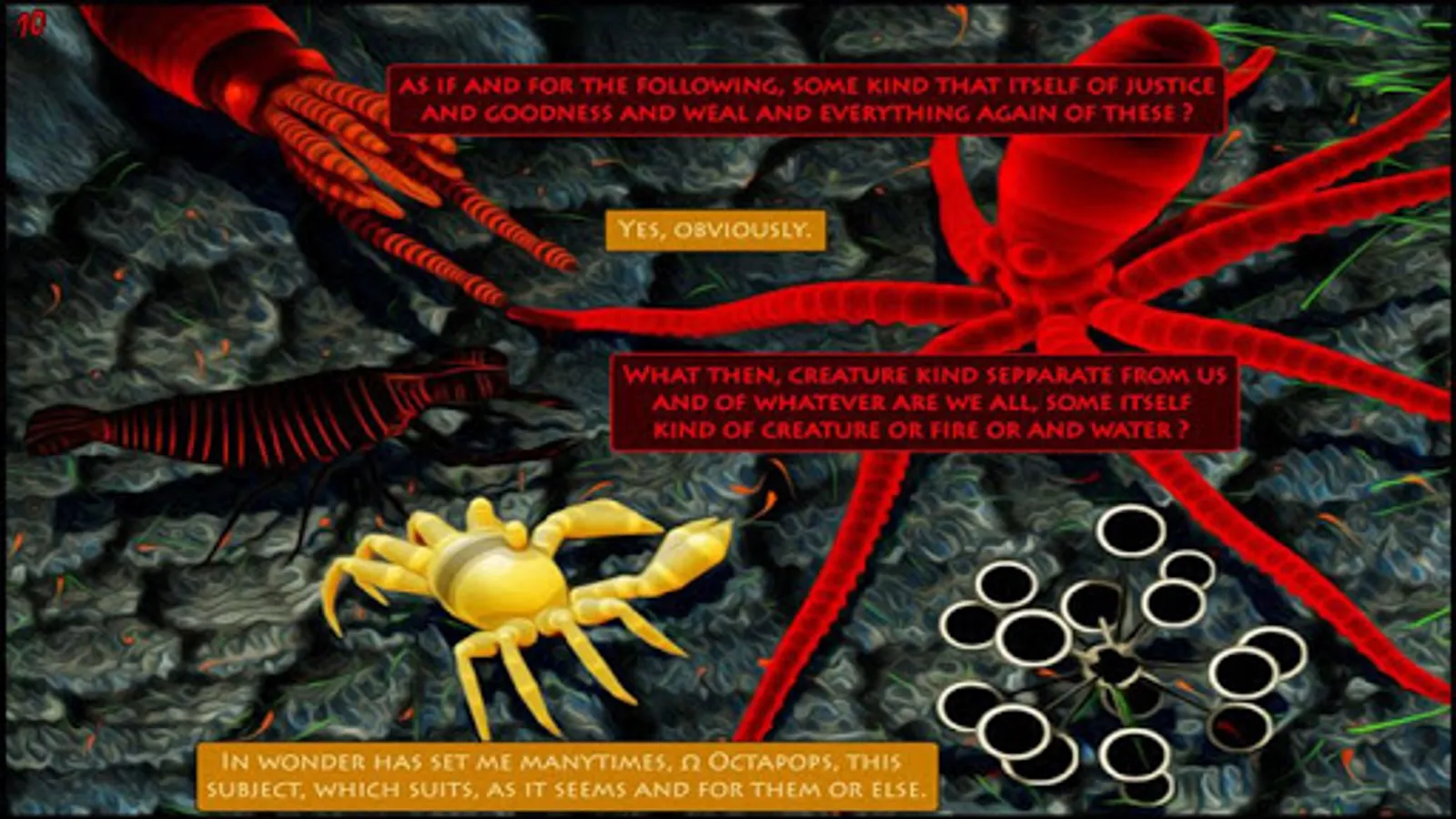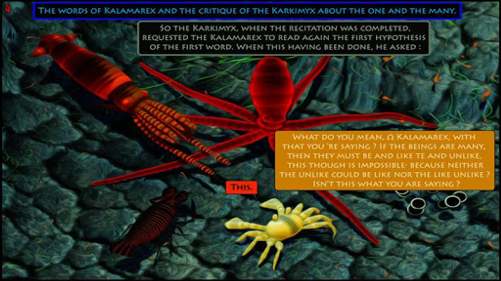 Welcome to the Philosophical Comyx, comic book based on philosophical works, combined with the ancient method of Aesopos storytelling, that’s, via the animals. The story takes place in the world of the wise creatures, while they investigate a peculiar manuscript, foundation stone of the dialectic and the theory of the kinds, trace of an assiduous interpretation of the universe through the speech· the one, the many, the infinite, the finite, the being, the not being, and many others that seem to and doesn’t seem to, that are and are not...