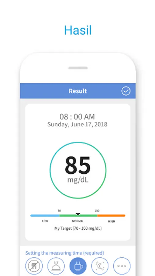 Your glucose level will be displayed on the screen after the test, and Elvasense App enables you to look through past results by date and time.