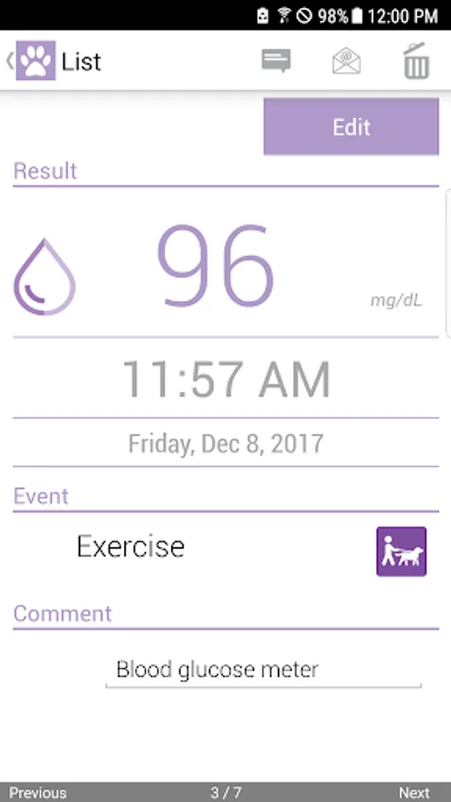Your glucose level will be displayed on the screen after the test and you can e-mail the test result with additional memo.