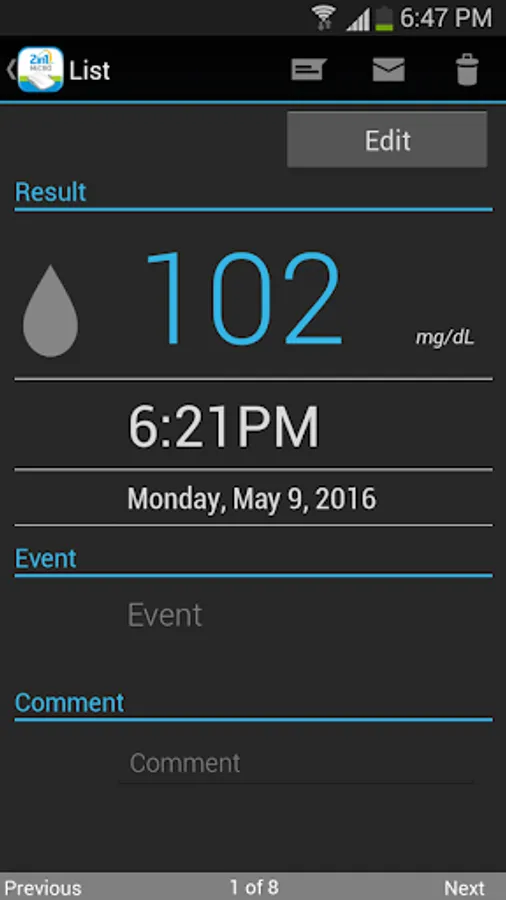 This app, 2in1 Micro is designed to help diabetics measure their blood glucose. You would need to buy Blood Glucose Meter named 2in1 Micro that is connected to Android phones(specially for Samsung Galaxy S2, S3, S4, S5, Note, Note2 and Note3) to test your blood glucose as 2in1 Micro will show you. Your glucose level will be displayed on the screen after the test and you can e-mail the test result with additional memo.