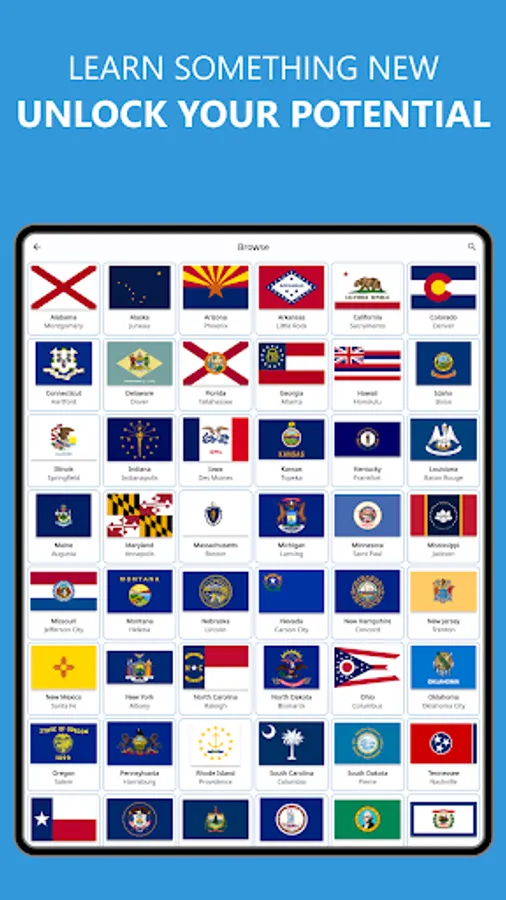 Embark on an exciting journey of discovery and knowledge across the United States of America. Effortlessly learn to recognize the capitals and flags of all its federal states. Whether you're a curious traveler, an avid geography enthusiast, or simply looking to broaden your horizons or impress your friends, this app is for you.