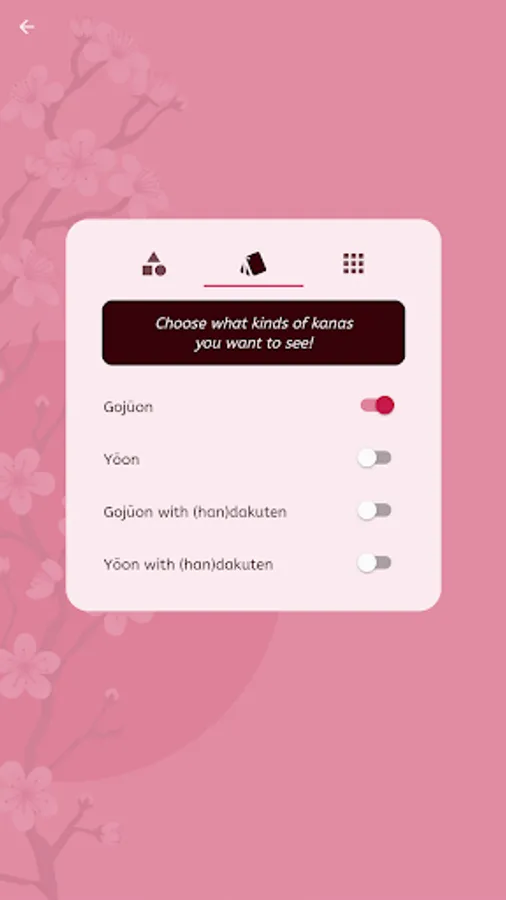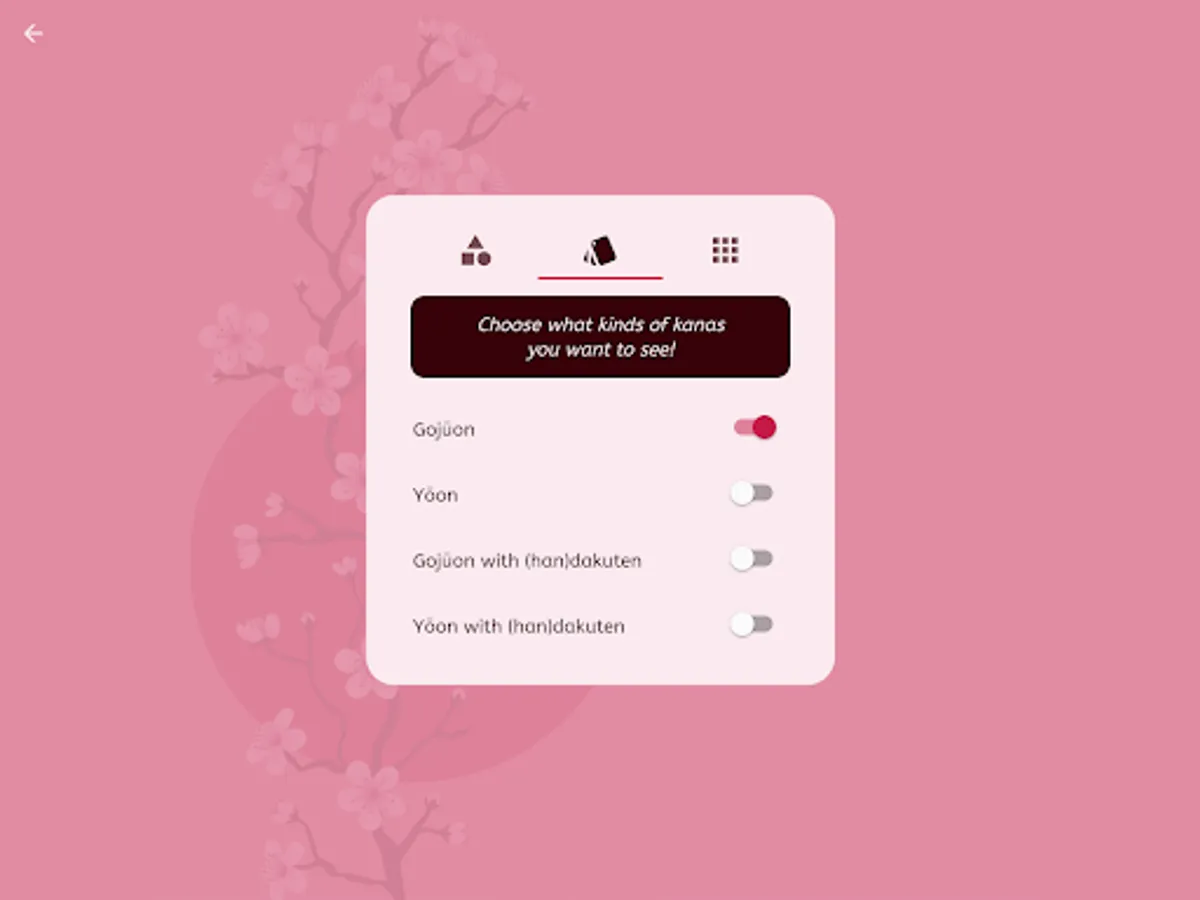Master gojūon, yōon, gojūon with (han)dakuten and yōon with (han)dakuten.