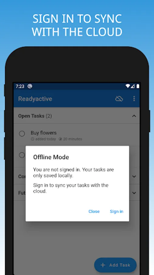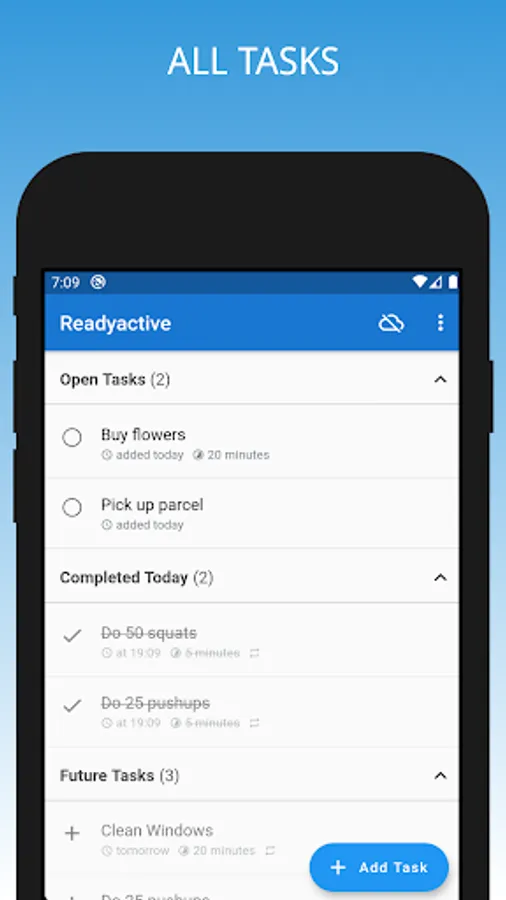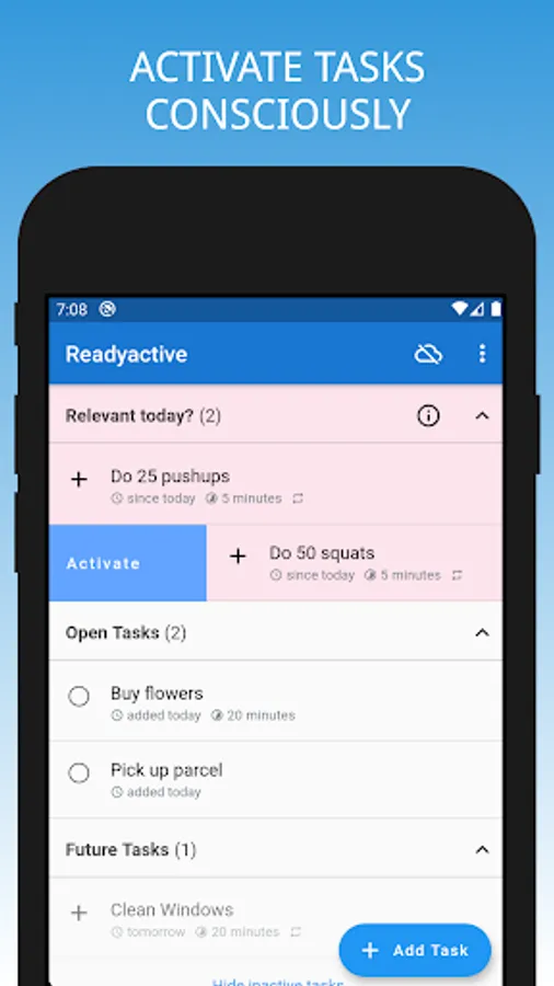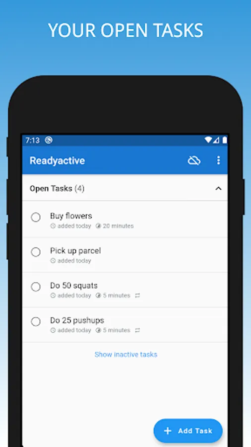 Readyactive offers everything you need to manage your everyday tasks. It is easy to use and includes three motivation modes that help you to get your tasks done.