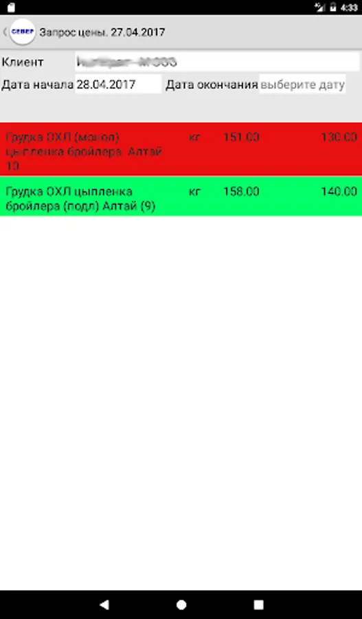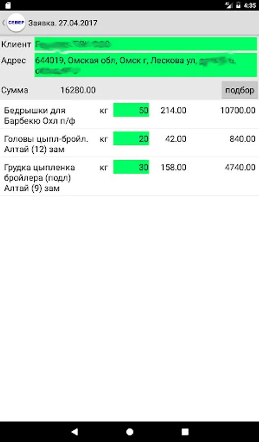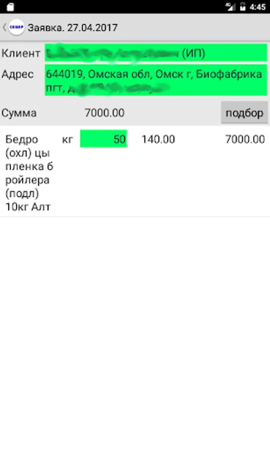 The program for sales representatives OOO Sever. Allows you to enter the application, Spezza queries, reports show.