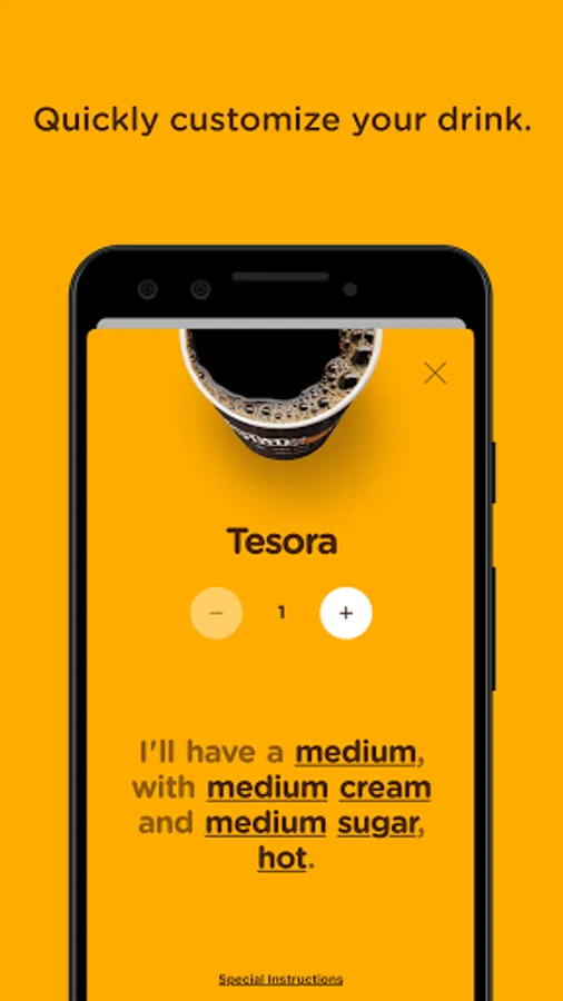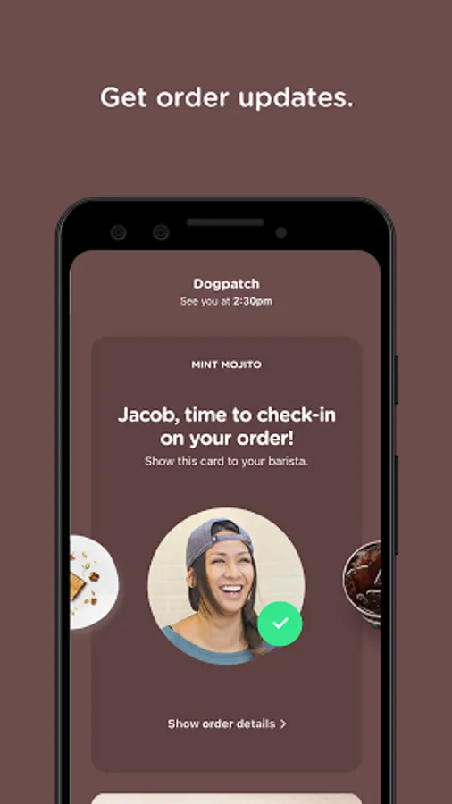 - Get order updates when your drink is being made and when it's ready for pick-up