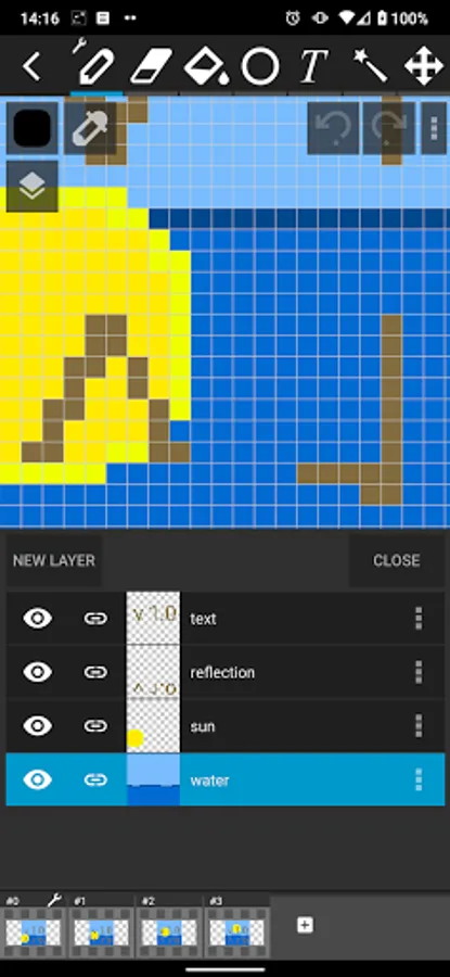 Currently it's rather simple graphic editor, suitable for pixel art and it supports those features: