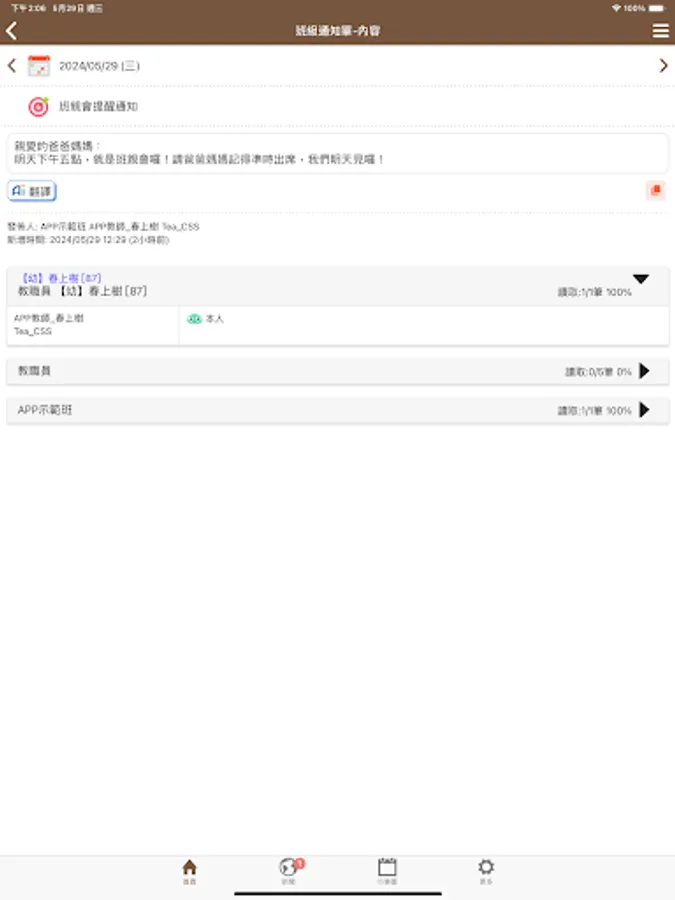 2. Class notification: receive messages from class teachers or schools.