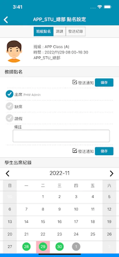 3. Notification of arrival and departure: roll call and broadcast of students' arrival and departure, and inquiry of class arrival records.