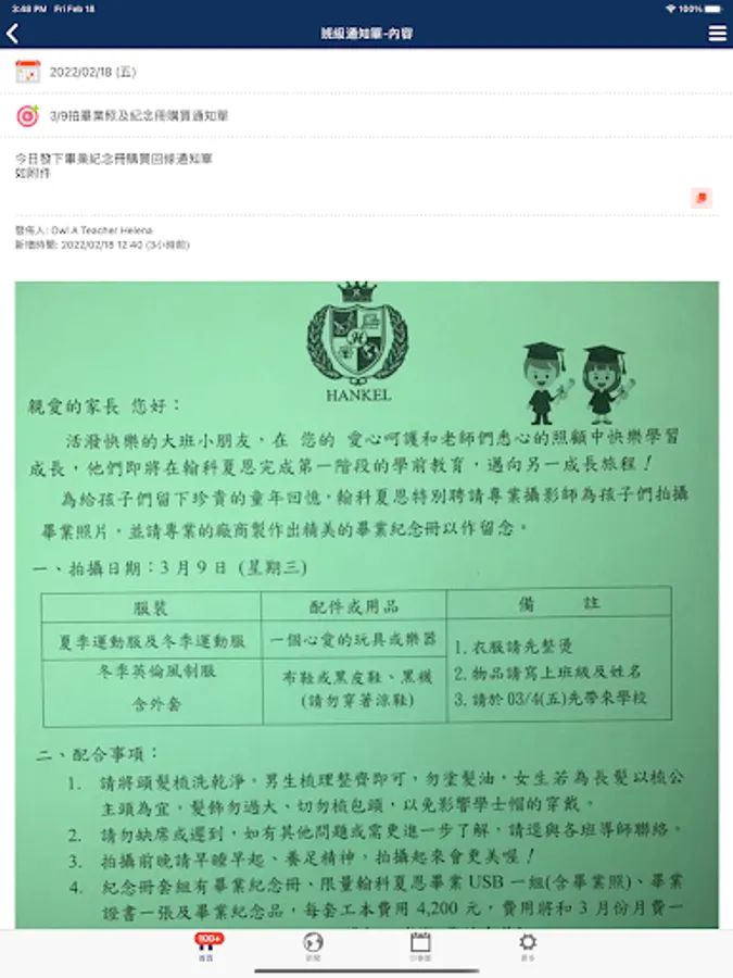 4. Album: A collection of photos sent by parents and teachers, which can be sorted and downloaded to mobile phones in batches.