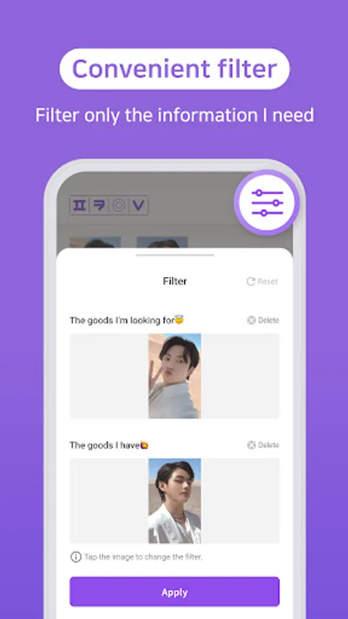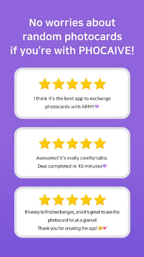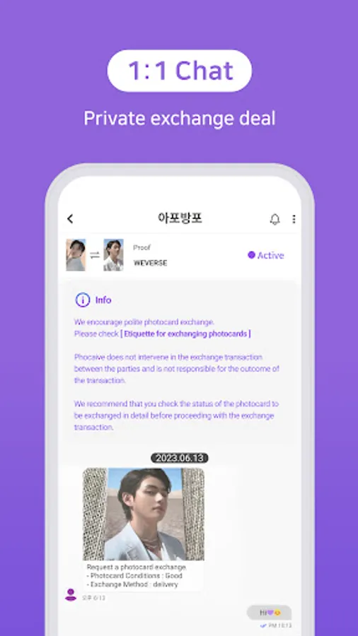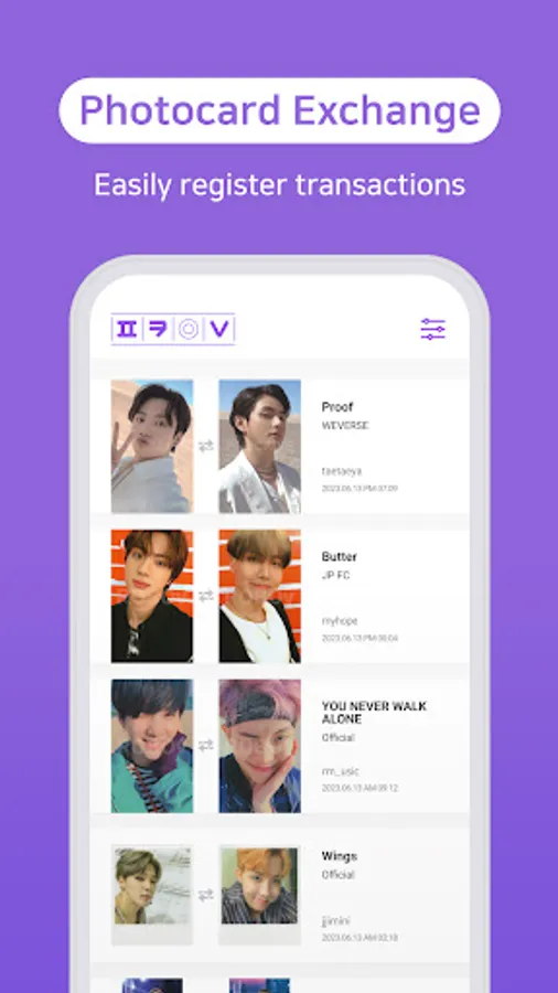 You can find a perfect deal by filtering the photocards you have and the photocards you are looking for.