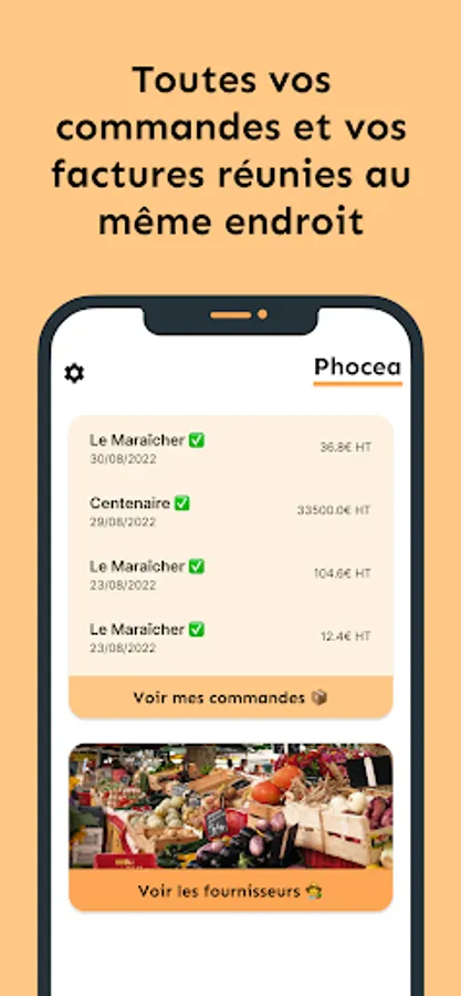 Phocea allows you to easily place orders with your suppliers and discover new ones near you.