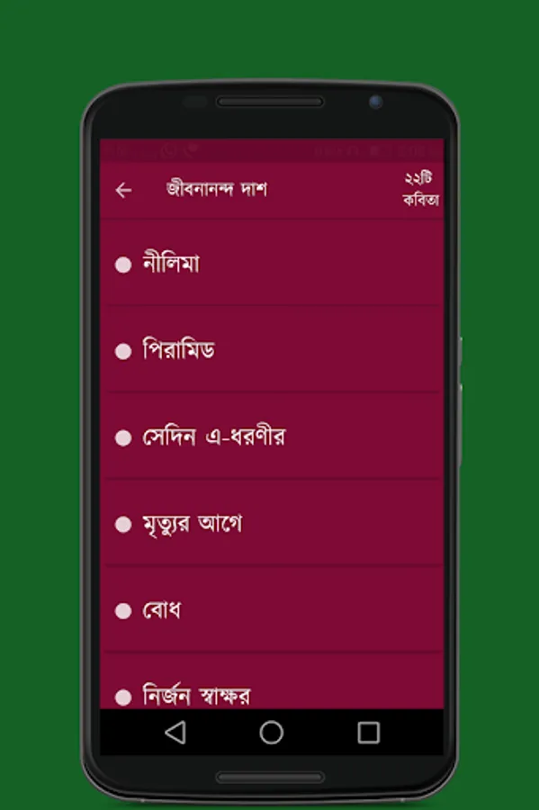 The heart of poetry with people. Poetry has been used as a good medium to express our thoughts since time immemorial. The Bengali Poetry Collection app has tried to bring together the poems of several famous poets. I hope Bengali poetry lovers will like the Bengali poetry collection app.