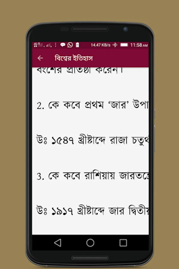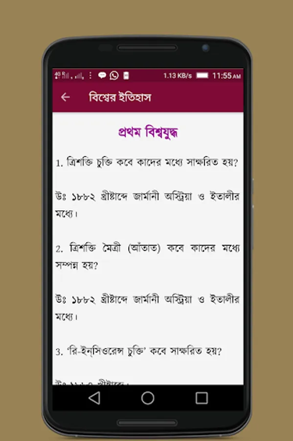 The History of the World app can be found in a short question-and-answer session on various events, from the seven-year war in Europe to the formation of the United Nations. In this app you will get a Q&A of important events from around the world including Asia, Europe, America continent.