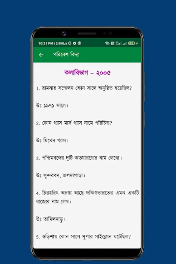 Environmental Science App in Q&A is an app containing many questions on various subjects of Environmental Studies in Bengal. Apart from the general thematic questions, the Environmental Studies app has been asked questions and their answers during the different universities of the year, which I think will benefit the readers. . We hope that the Environmental Education app in question will be helpful for the students of various competitive exams like SSC, PSC, WBCS, CGL, IBPS, Group-D, including students from schools, colleges and universities.