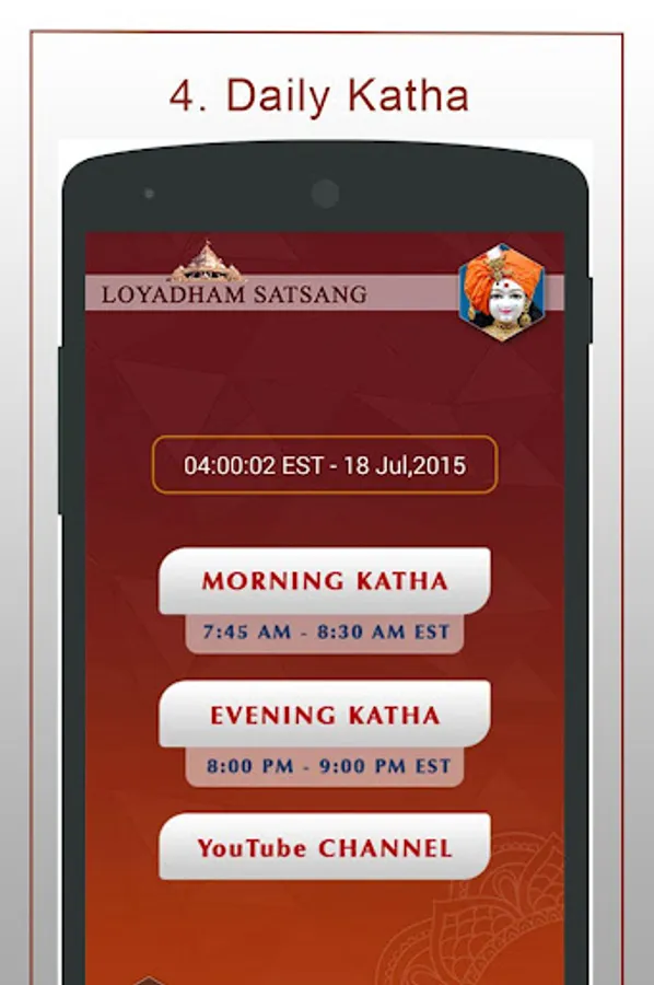 3) DAILY KATHA : Be a part of prayer meeting through the Daily Katha feature.The Katha is conducted twice daily , once in the morning and one in evening.