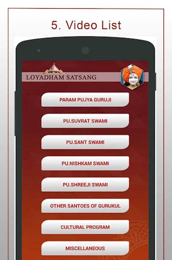 5) VIDEO : View recordings of messages posted by pious priest.Devotees can get varied information as the priest speak about various religious topics.