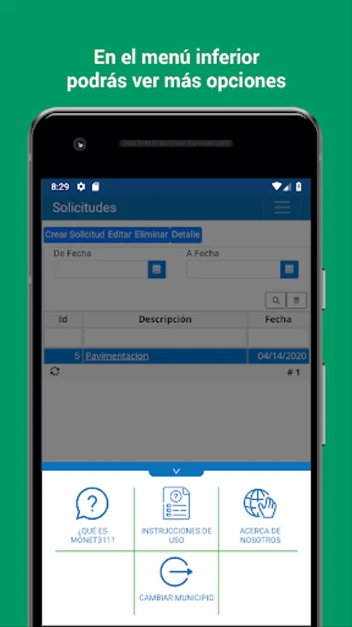 This application allows the registration of citizens, allowing you to create a service request. It will give you the opportunity to request this service without the need to leave the home.