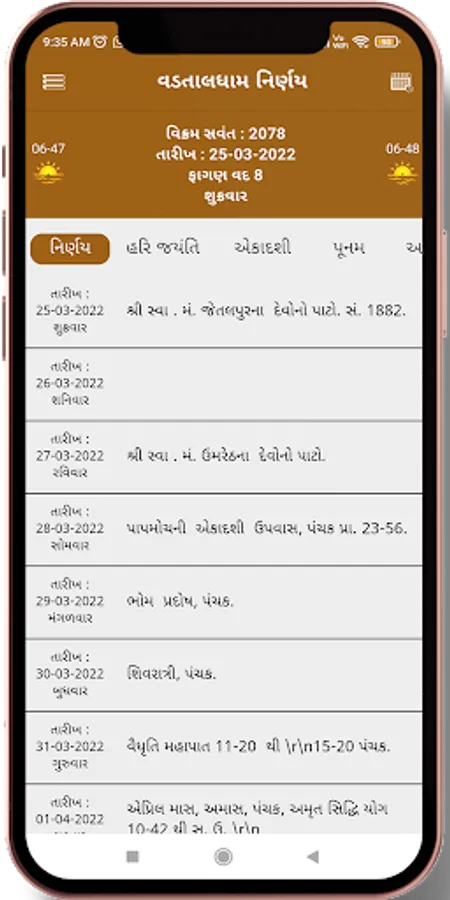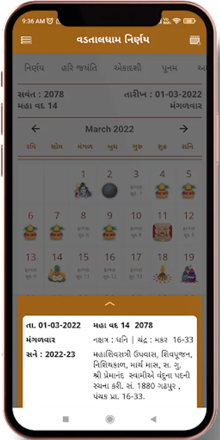 Vadtal Dham - Nirnay (also known as the Panchang,an indian almanac) Provides information daily movment of the stars, for the hindu Samvat calendar year 2078-2079 The year starts from Chaiter Sud-1 (2 April 2023)and end on the Fagun - vad (21 April 2024).