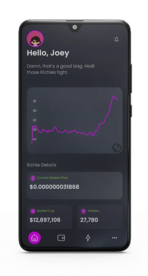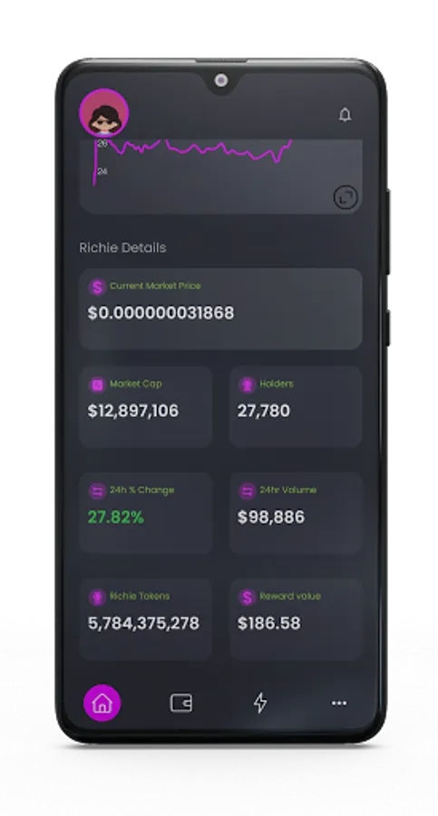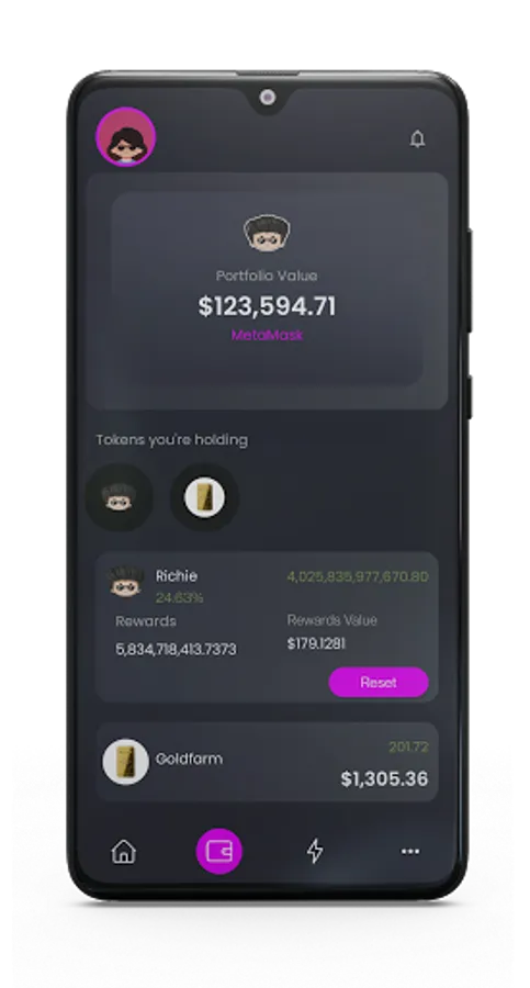 Features offered by RichFolio mentioned below:* Richie's chart, price movements, market cap, volume and more for all.* Tracking Frictionless Farming Rewards of Richie as well as other various listed coins.* Being eligible to get airdrops of different projects as well as a chance to become a winner of Lottery Rewards every 24 hours.* Setting up cool and exclusive avatars of Richie as your Display Picture* Adding more than one wallet address to track your portfolio value that adds up according to the coins supported by and listed on RichFolio.* Request and vote for other tokens that you want to see getting listed on RichFolio* Richie's official merchandise coming soon in upcoming versions.* An interactive Game based RichieFaucet is on the cards that will reward with free Richies as you accumulate more and more Richies by playing the game, soon in upcoming versions.