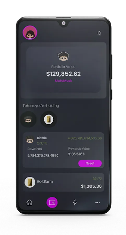 The most rewarding and cryptocurrency tracking app is now in your hands. RichFolio offers features that are unique and never experienced before. An app that supports the tracking of rewards generated through Frictionless Farming of not just Richie but also other coins that are listed on RichFolio+.