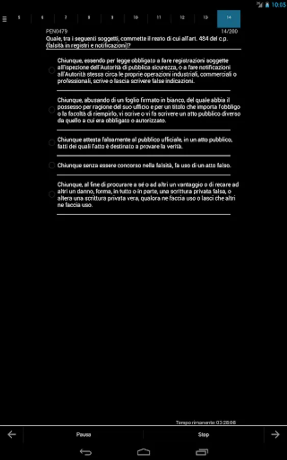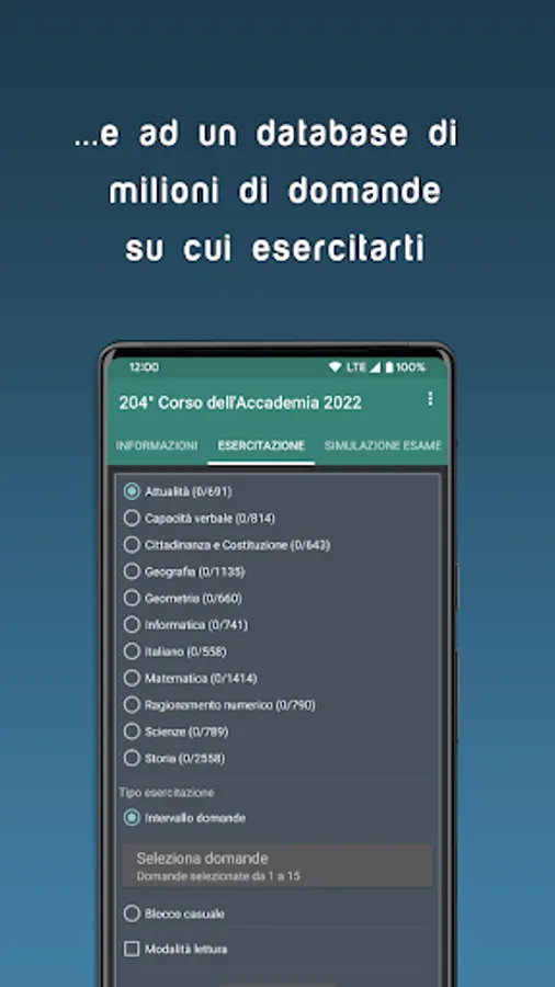 In reading mode it is possible to study the contents of the database by browsing the questions and immediately viewing the correct answer.