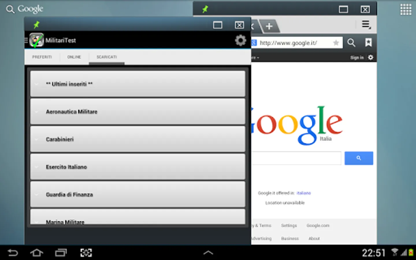 A data connection is required for the operation of MilitariTest, but by purchasing the Pro version, via in-app purchase, it is possible to save the databases and take advantage of all the functions offline.