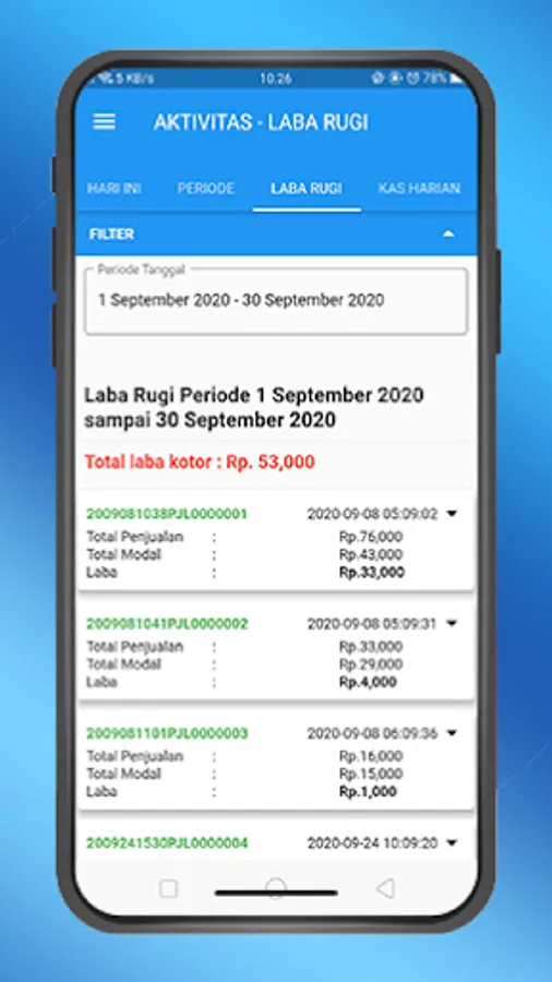 KARTI POS, juga sudah dilengkapi laporan harian, periode, kas dan laba rugi pada fitur dasarnya. Fitur ini sangat diperlukan dan penting digunakan pada usaha.