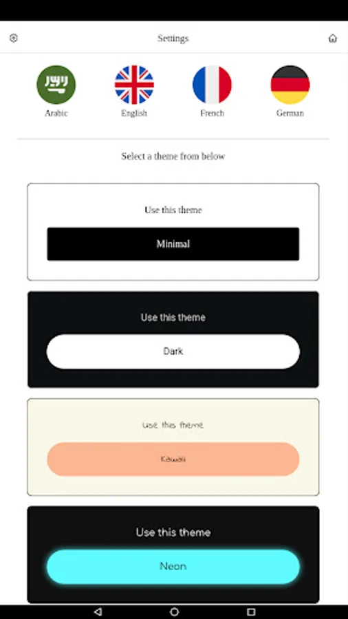 - Multi language: Noted is available in four languages: English, Arabic, French and German.