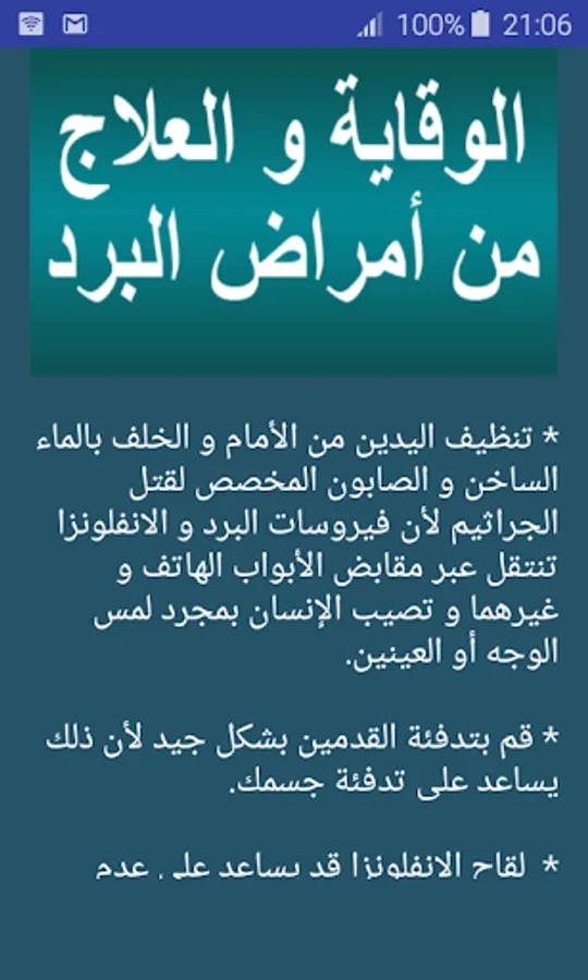In this application explain the cold diseases or colds, and explain how to prevent and cure them. No need to linters to run the application.