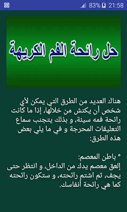 In this application we give the reasons for this problem, as well as the solution to get rid of bad breath.