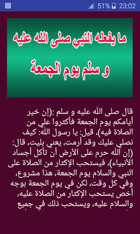 Sunan Friday is the application runs without Net shows you what the Prophet, peace be upon him and do before going to Friday prayers. There are Sunan Friday unaware of everyone. For this reason we put your hands Muslim brother this application to remind the Sunan Friday. The mismatch with regard to self-clean clothes and supplication and prayer on the Prophet, and so on. Sunan Friday or Friday is the etiquette of an application does not need linters to operate.
