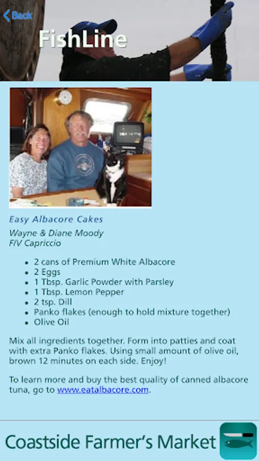 FishLine includes features such as using your location to find the nearest port, boat or market with fresh seafood for sale, so if you are on vacation or are near several ports, FishLine helps you figure out where to find the fish.