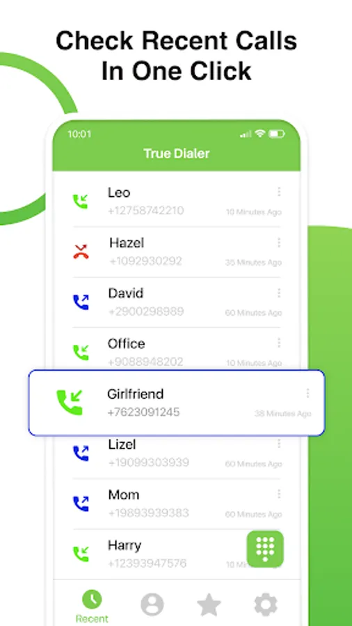 The recent call log feature in our phone dialer app is a comprehensive and organized list of all your recent calls, both incoming and outgoing. The feature is designed to help you keep track of all your conversations, quickly view and call back any number, and access call history with just a few taps. The app is designed to make calling and managing contacts effortless, providing a seamless dialing experience.