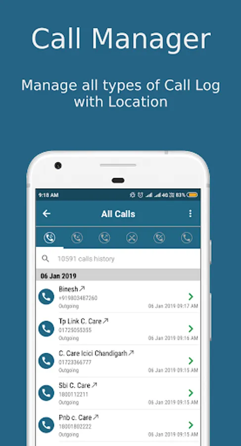 • Call Manager keep your call history forever and list them category wise for ease of access. Quick and advanced search options helps you to easily access data you are looking for.