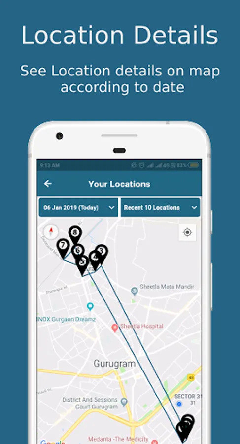 • Location & GPS tracker - True Frank Allows you to save current location in every 10 minutes intervals. Its also show you location how much time elapsed.