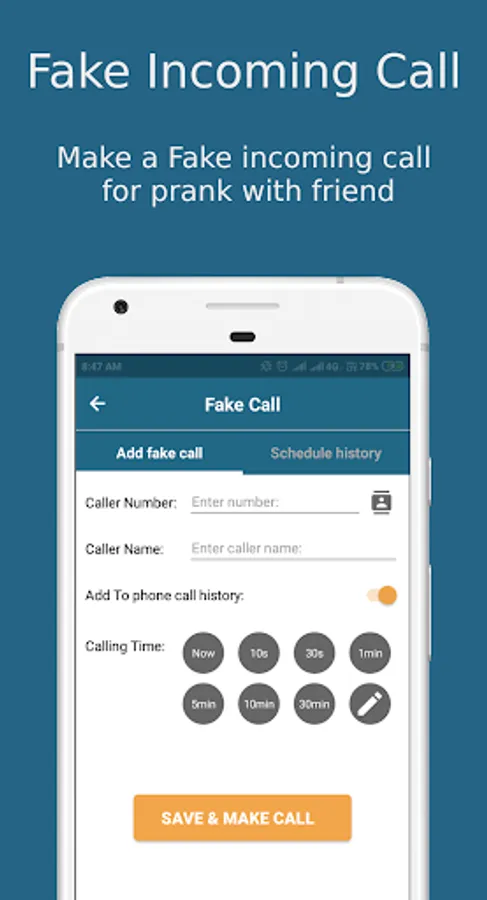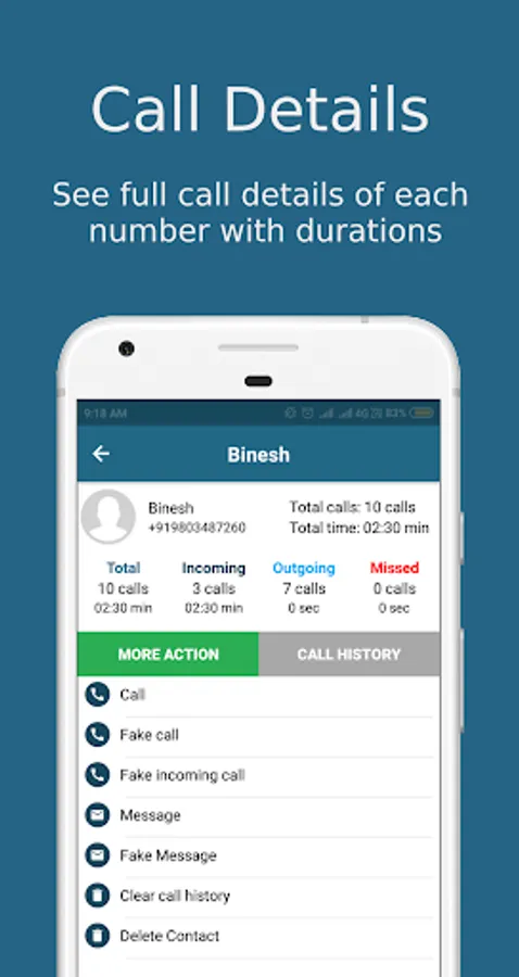 • Add Fake Call: True Frank Allows you to insert a fake call into call history like incoming, outgoing and missed call.