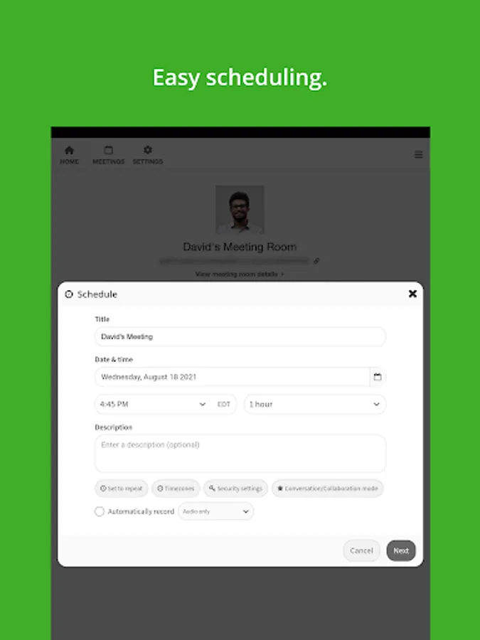 A virtual video conferencing suite giving you the freedom to work – anytime, anywhere, on any device.