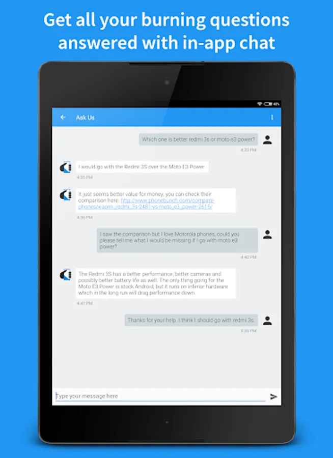 - Ask Us: Only for our subscribed users, with Ask Us you can get help on using your smartphone or get your questions answered about any phone your are thinking about. We can also help you in choosing the best smartphone you can buy in a particular budget.