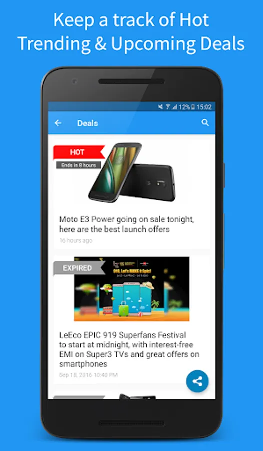 - Deals: With our Deals platform you would be able to get details on any upcoming discounts on smartphones, exchange, promotion or launch offers as well as price drops. You will get deal alerts within the app, as and when they are happening.