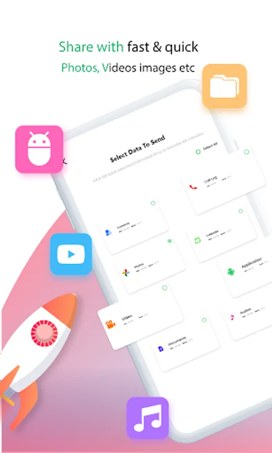 In this technical time it is a time waste to do switch files by a data cable or manually etc, you do not have to transfer files manually, transfer data from one phone to another is surprisingly easy now with our Phone Clone app. Phone clone is a favorable data shifting app for all android phones to move data from one mobile to another. move all data of the old phone to the new one with super speed. Use the cloning app for sharing images, videos, documents files, apps, and all media files. Our Phone Clone app is the perfect cloner to switch data, There will be no need for any cable or any wire to send data from one to another phone. Android Phone switch app for cloning app to transfer apps, Transfer videos, transfer images, transfer apps, and document.