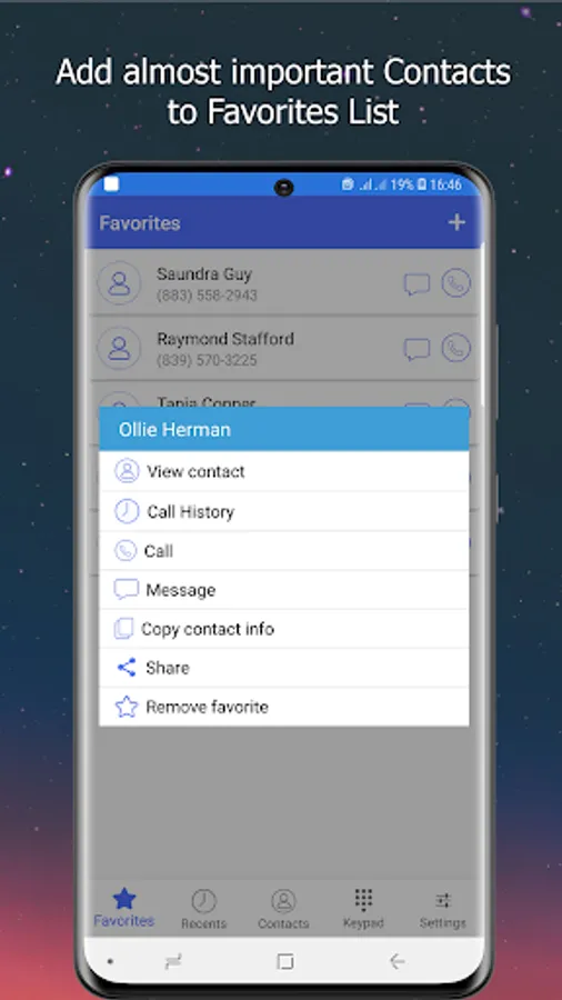 Easy to use, Phone Dialer - Contacts and Calls provides you very convenient way to quickly access your recent calls, contacts, favorites and call history.