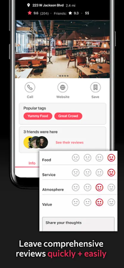 -Upload a photo along with your review so your followers can see what’s good with the food, cocktails + vibes.